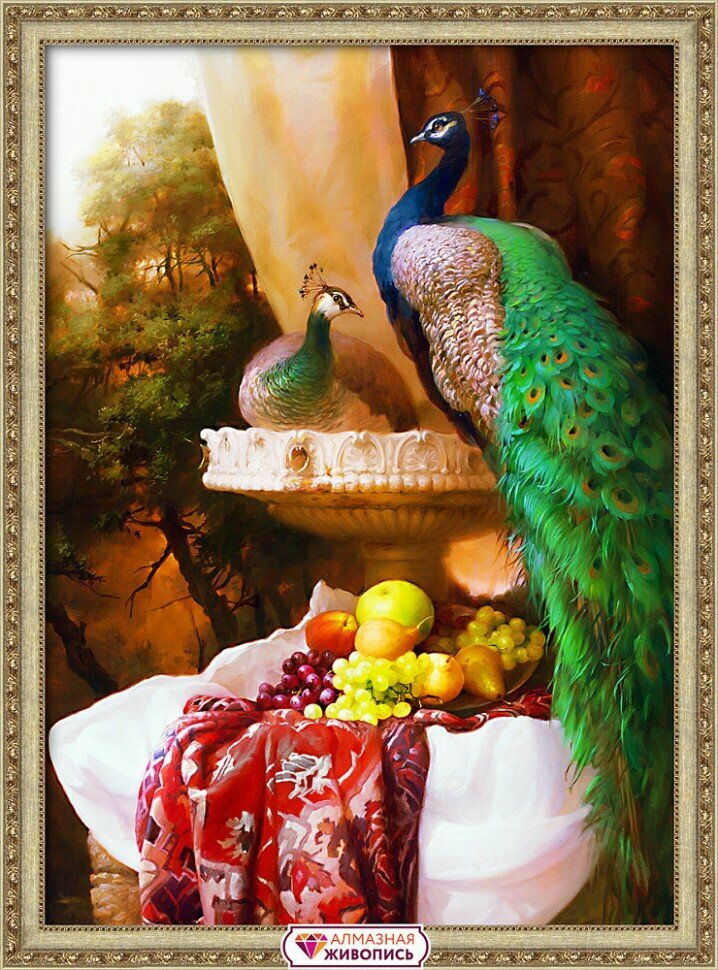 Сервис сравнения цен СкидкаГИД предлагает сравнить цены на товар «Алмазная вышивка Пара павлинов (АЖ-1825) - картина стразами Алмазная живопись (размер: 50х70 см)»