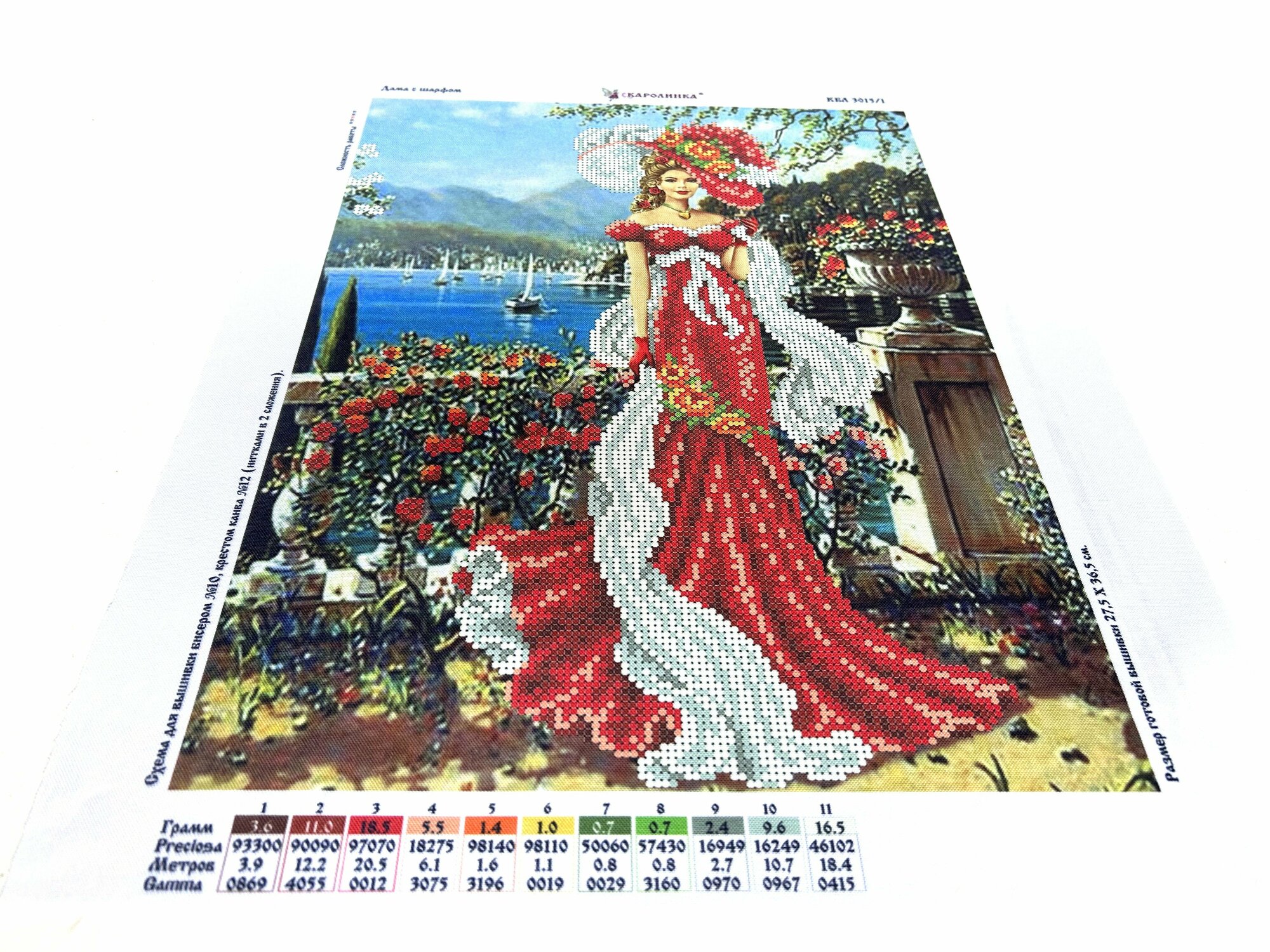 КБЛ 3015/1 Дама с шарфом - схема (Каролинка) (размер: 27,5х37 см)