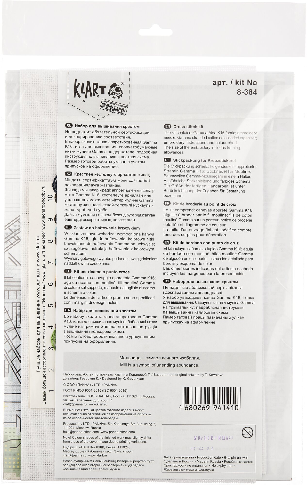 | В набор входит | канва Aida 16 ct, мулине, игла, цветная символьная схема, инструкция |