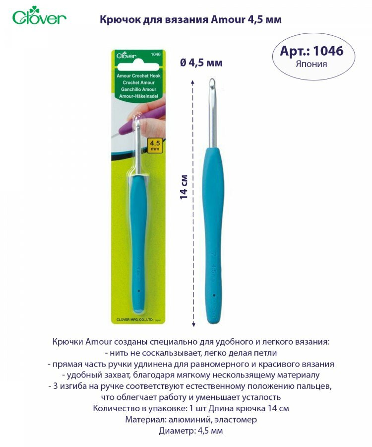 На сегодняшний день товар «1046 Крючок для вязания Amour 45 мм Clover» можно купить с кешбеком в 1 магазине: Яндекс.Маркет