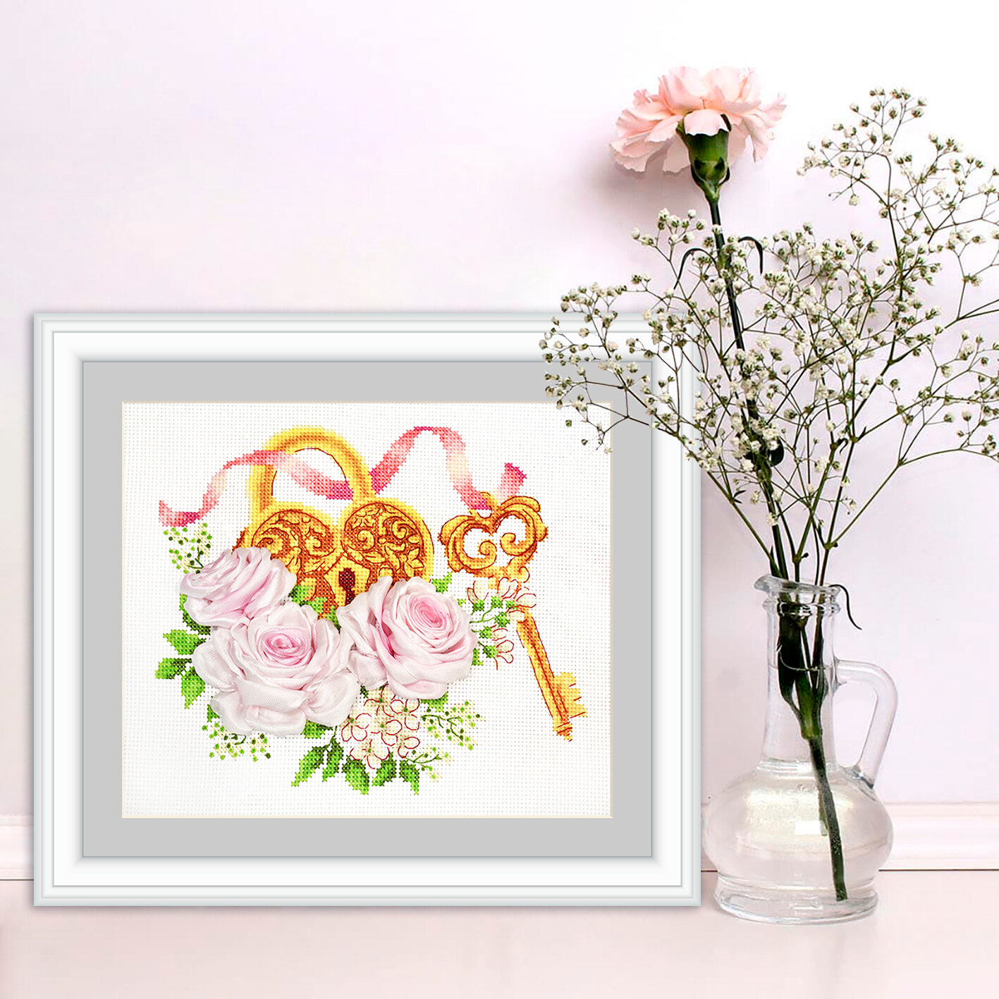 | Техника | счетный крест, вышивка лентами |
