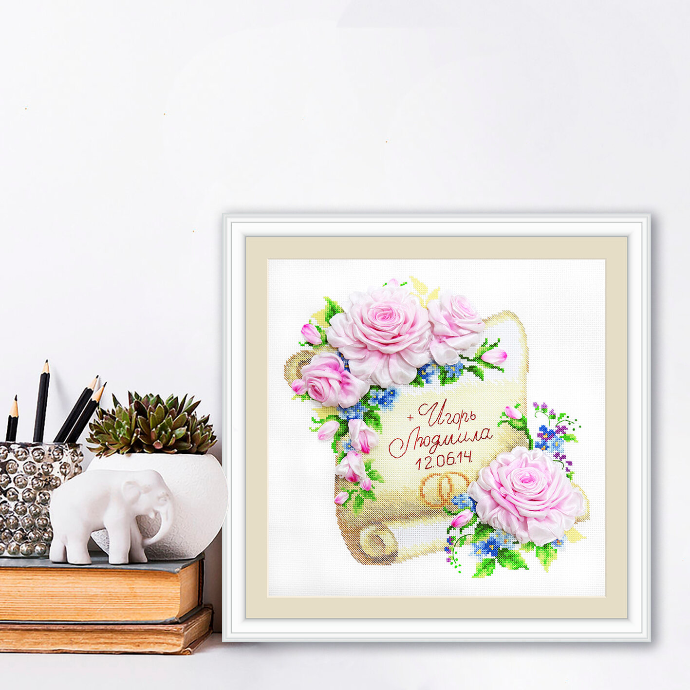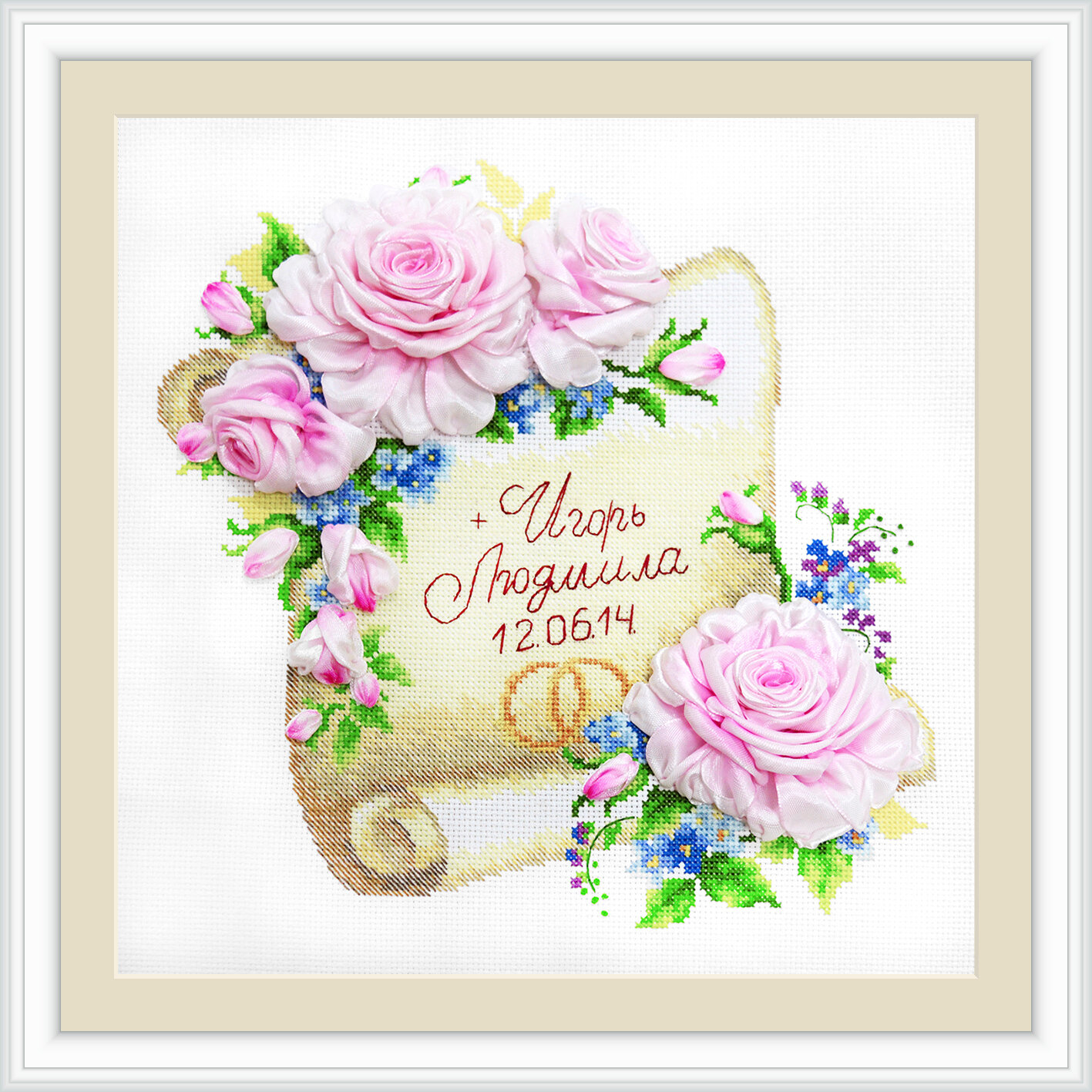 | Техника | счетный крест, вышивка лентами |