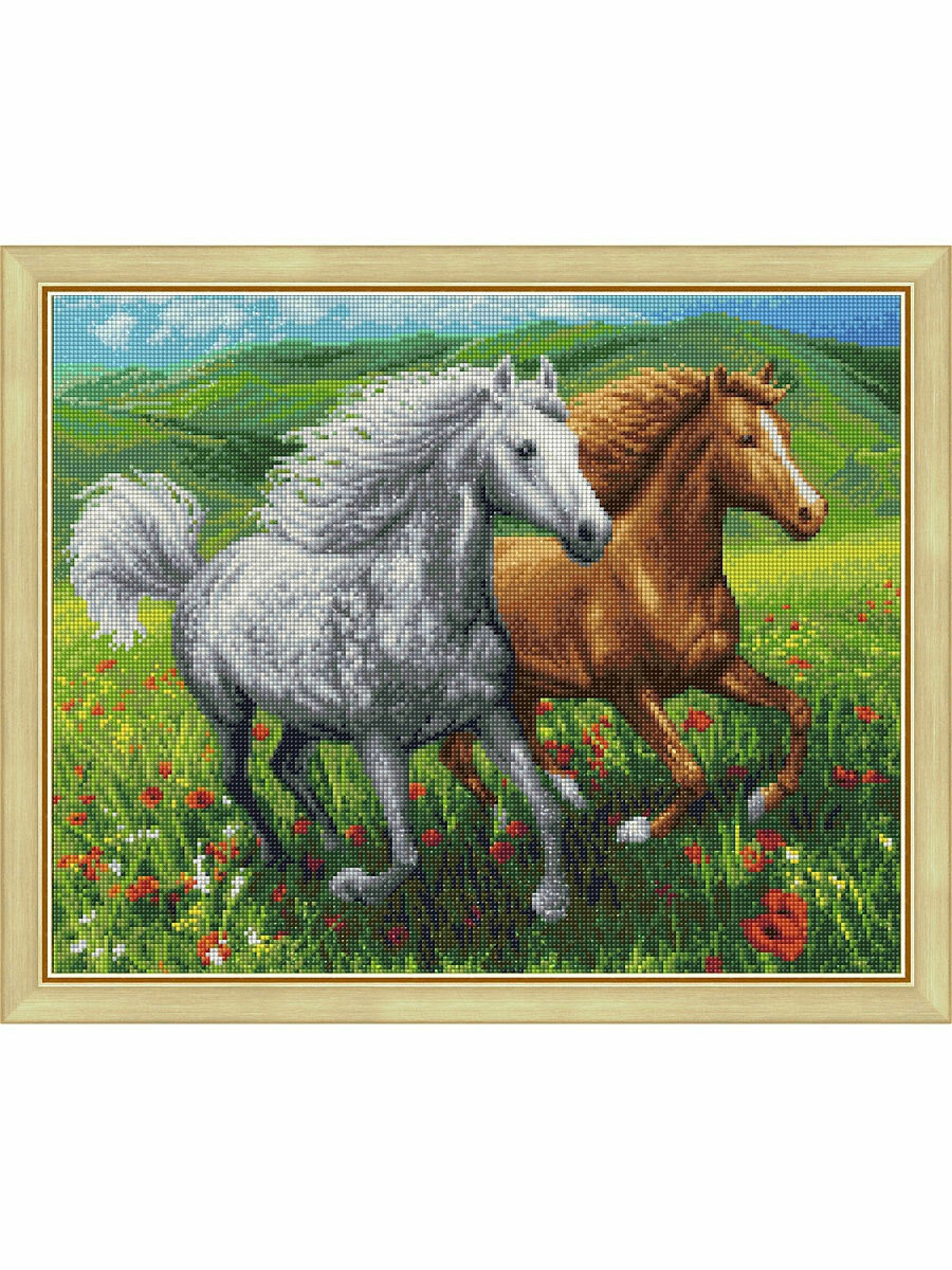 Сервис сравнения цен СкидкаГИД предлагает сравнить цены на товар «Алмазная вышивка Кони на лугу (АЖ-1766) - картина стразами Алмазная живопись (размер: 50х40 см)»