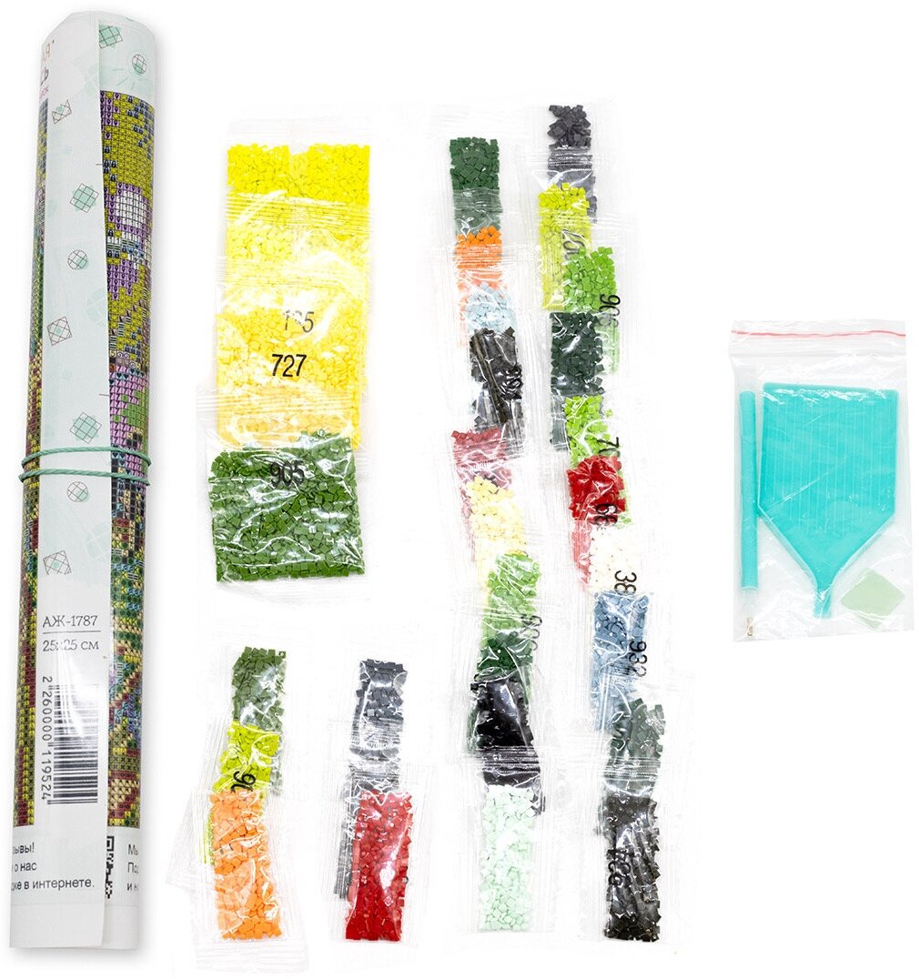 | В набор входит | полотно-схема с клеевым слоем, с условными обозначениями, инструкция, пластиковое блюдце, стилус, упакованные стразы |