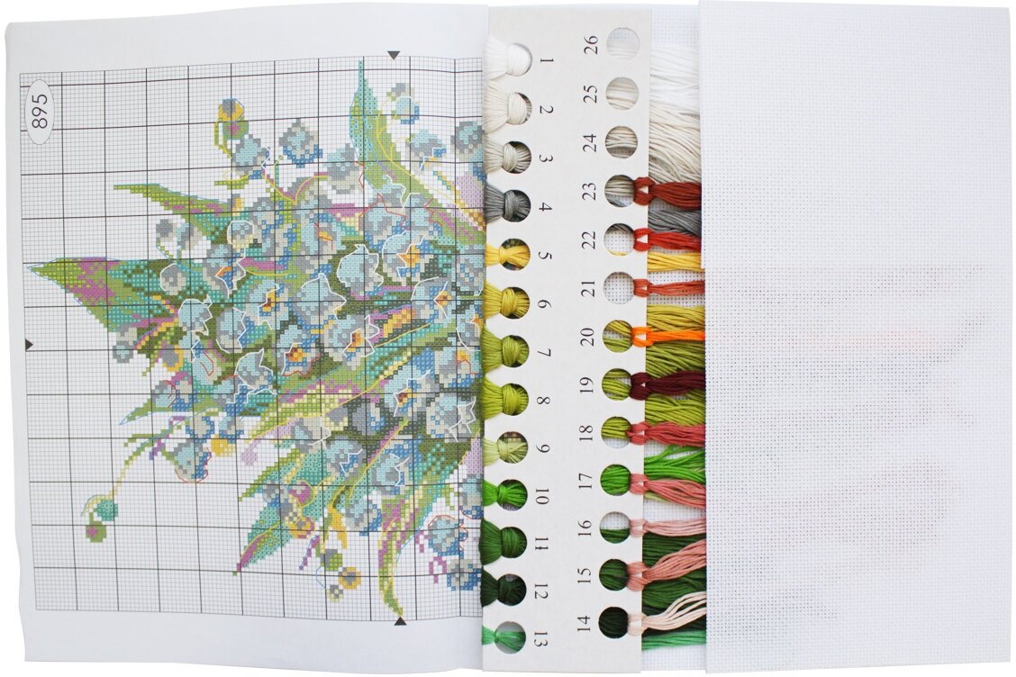 В наборе: пластиковая канва 14 каунт, хлопковое мулине ПНК им. Кирова (14 цветов), магнитный лист, подставка, игла, цветная символьная схема, инструкция.