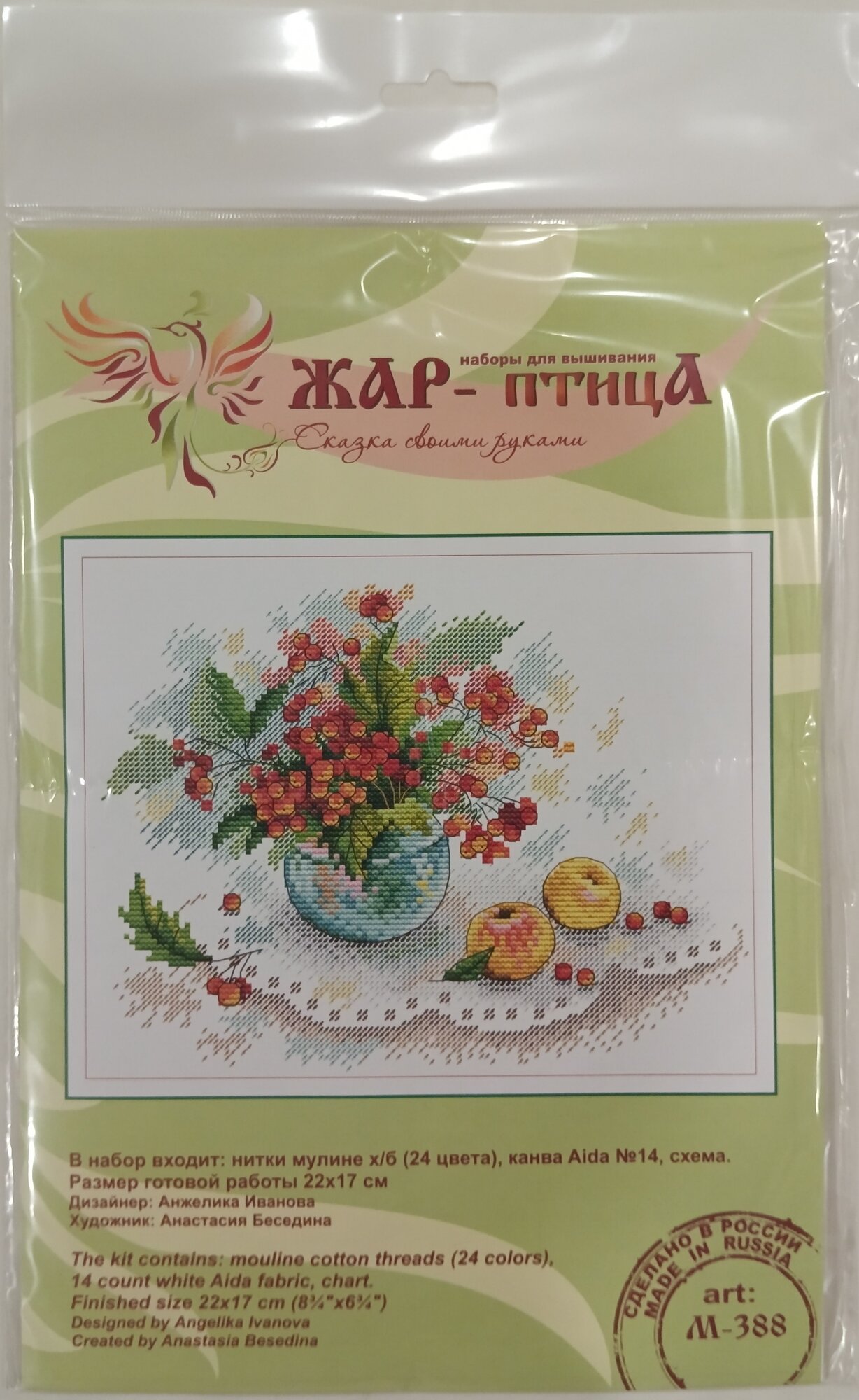 | В набор входит | канва Аида №14, нитки мулине 24 цветов, схема и руководство по вышиванию |