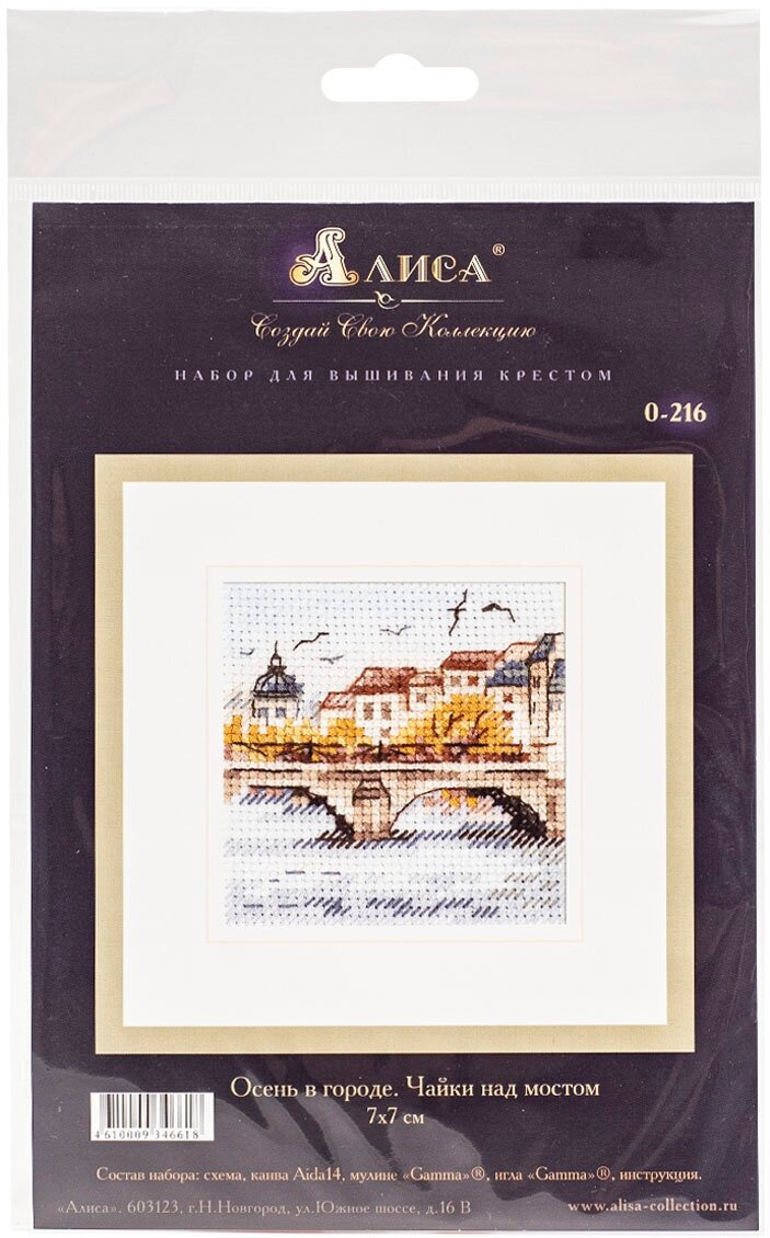 0-216 Осень в городе. Чайки над мостом Алиса (размер: 7х7 см)