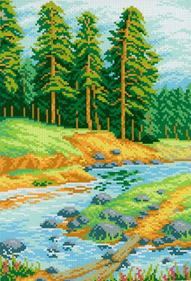 Сосны Рисунок на канве 30х40см 30х20(30х40) МП-Студия СК-020 30х20(30х40) МП-Студия СК-020 Состав: Канва Аида 14 с нанесенным рисунком-схемой, количество цветов мулине — 17 (нитки приобретаются отдельно!), частичная зашивка.