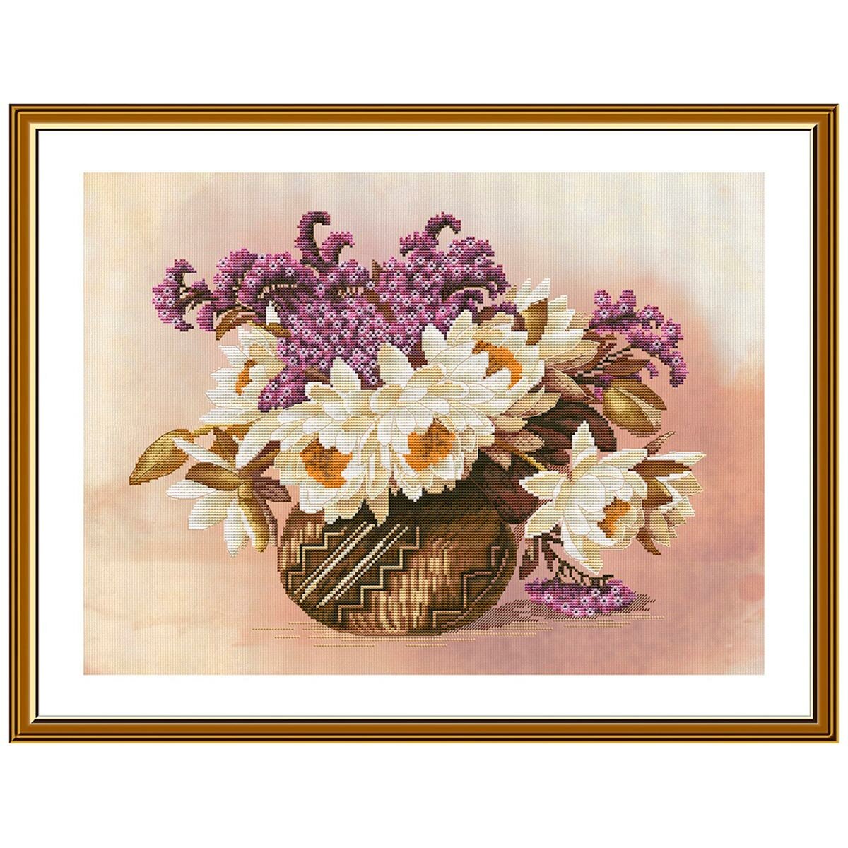 В наборе: канва Aida 16 с нанесенным фоновым рисунком, мулине AVRORA 120, игла, цветная символьная схема, инструкция.