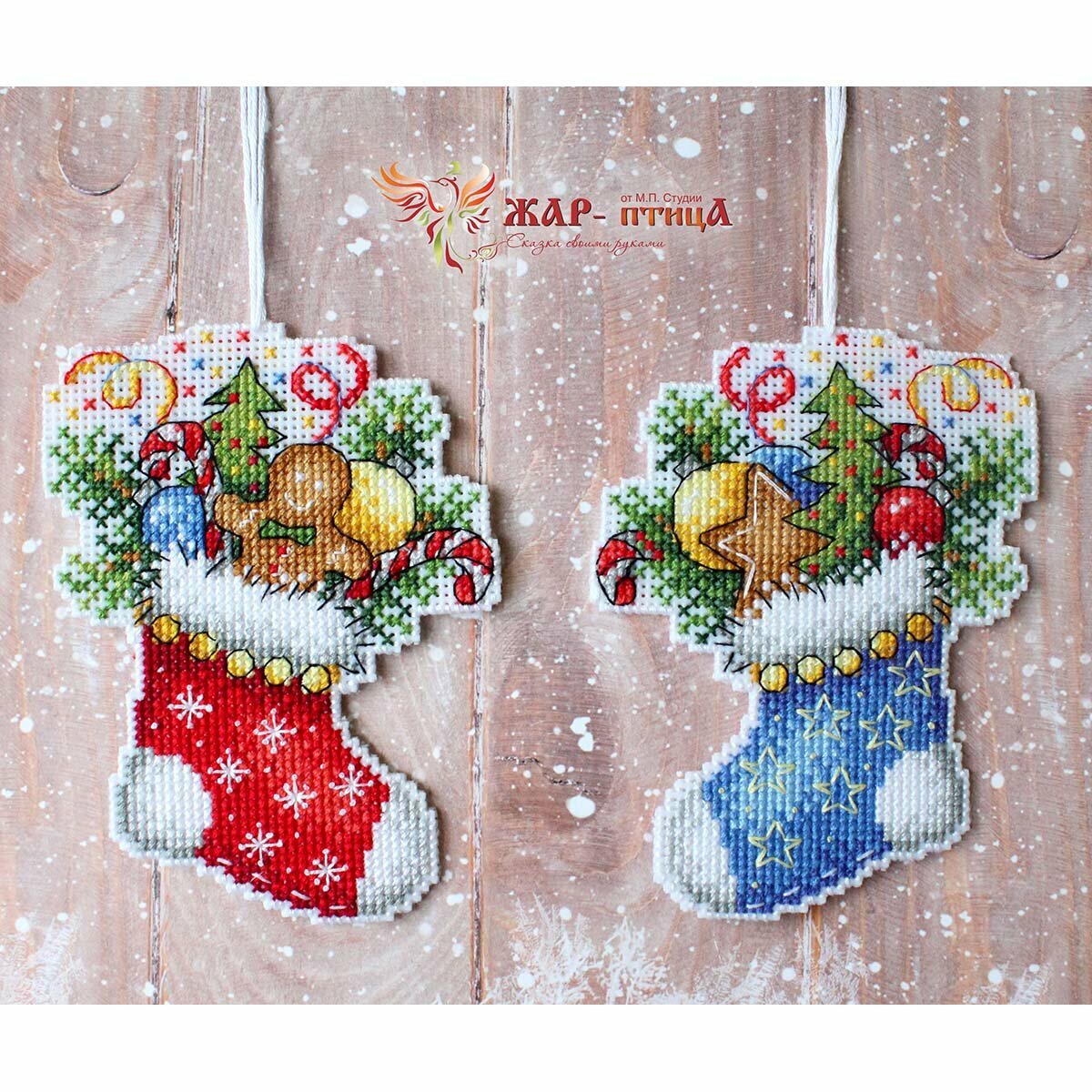 Сделайте своими руками яркий сувенир-подвеску 'Новогодний носок' – это увлекательно и быстро. Набор подойдет даже начинающим, достаточно проявить терпение, аккуратность и освоить простую технику 'крест'. Пяльцы или рамки не понадобятся – пластиковая канва отлично держит форму. Готовые элементы надо вырезать по контуру и соединить между собой аккуратными стежками. При желании между деталями игрушки можно вклеить или вшить ленту-подвес. В наборе: канва пластиковая Aida №14, нитки мулине, разобранные на органайзере, игла, схема и инструкция. Количество цветов: 18. Размер готового сувенира: 12х9 см.