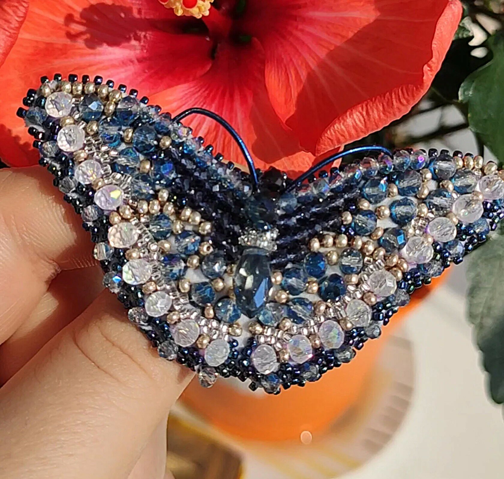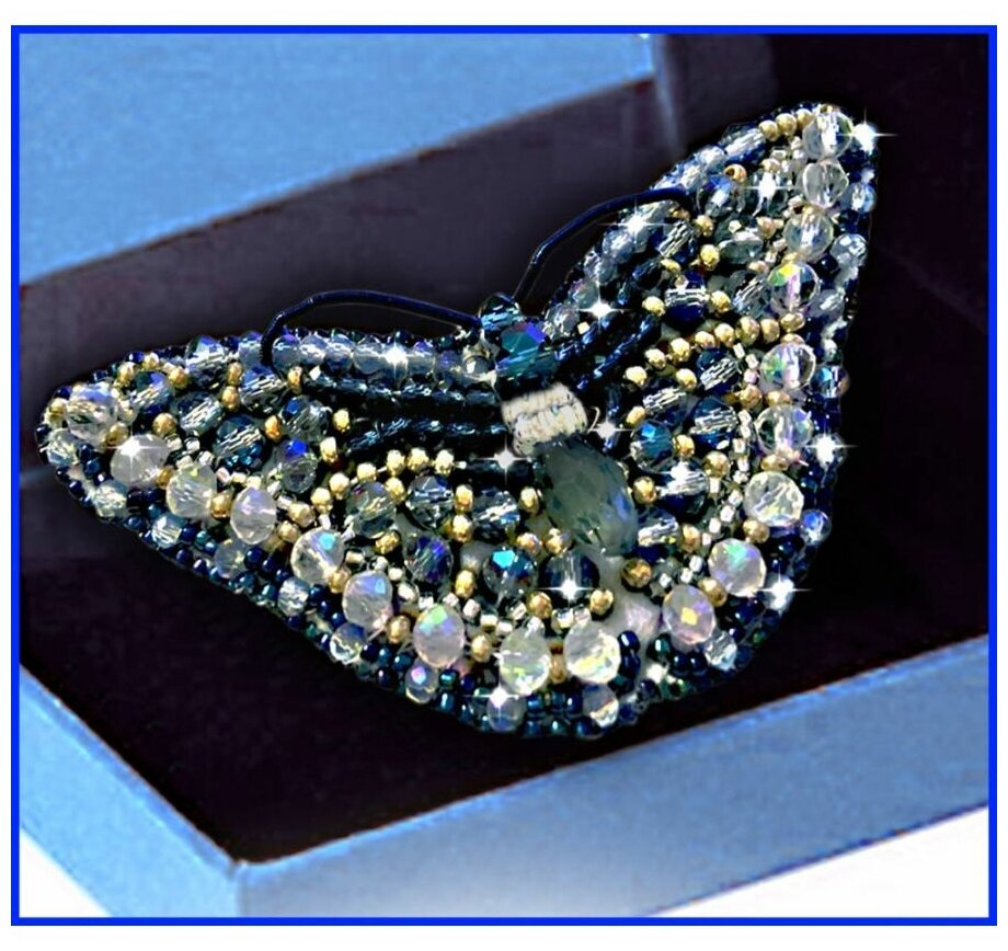 Набор для вышивания броши Брошь "Бабочка Джинс", арт. 77-Б-17. Любая рукодельница оценит по достоинству красоту и качество наших наборов. Вы получите небывалое удовольствие от вышивания, а результат превзойдет все ваши ожидания. Состав: Фетр с нанесенной авторской схемой, хрустальные бусины, бусина-капля, ювелирный бисер тохо (Япония), бисер Чехия, канитель, трунцал, игла, картон, основа для броши (булавка), искусственная кожа, схема расположения бусин, инструкция с фотографиями. Размер 3,5*7,5. Прекрасный подарок любимому папе, дедушке, мужу, любимой девушке, дочери, сестре, свекрови, коллеге, тете.