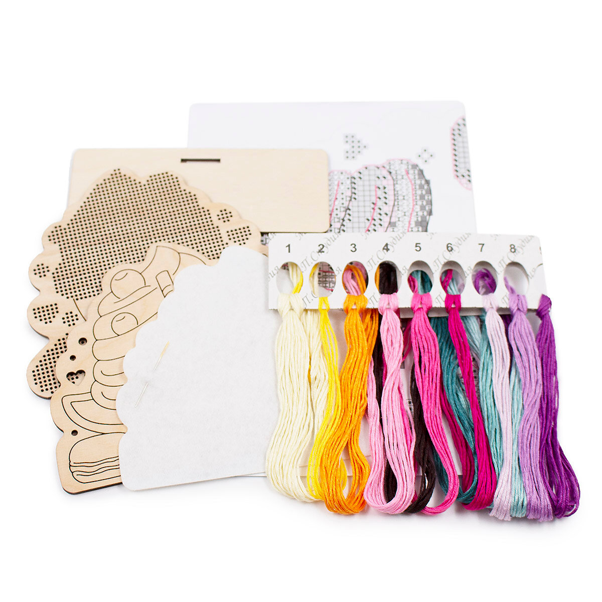 | В набор входит | перфорированная основа из фанеры 4 мм., мулине производства ПНК имени Кирова (22 цвета) разобраны на органайзер, чешский бисер первого сорта Preciosa (1 цвет), белый фетр для обработки изнаночной стороны (толщина 1 мм.), бумажная двухцветная символьная сх |
