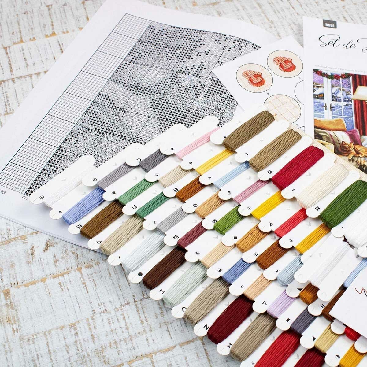 | В набор входит | канва Aida 18 ct белого цвета, хлопковое мулине Anchor 58 цветов, черно-белая символьная схема, игла, инструкция по вышиванию |