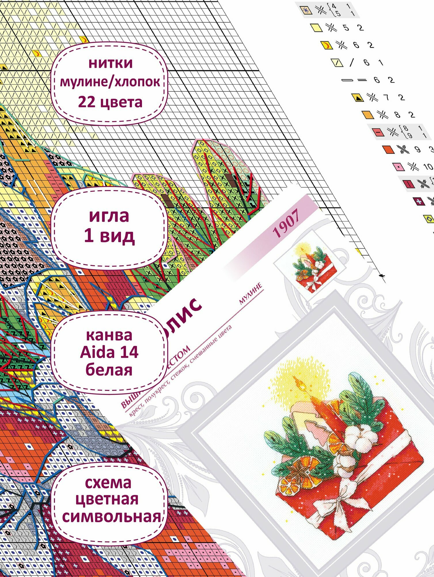 | В набор входит | канва Aida 14 Zweigart белого цвета, мулине Anchor, цветная символьная схема, игла, инструкция |