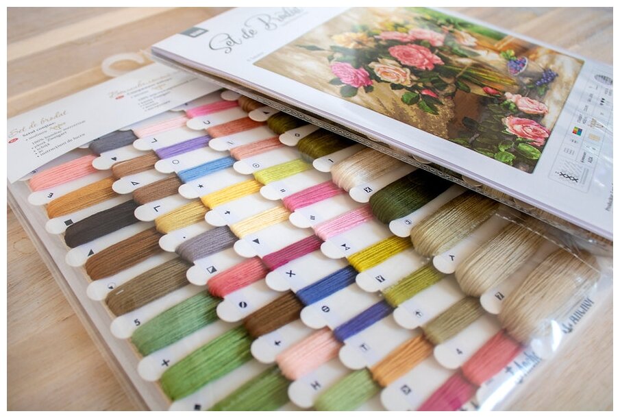 Комплектация | канва Aida 18 ct Zweigart - 1 шт; нити для вышивания Anchor - 57 цветов; игла - 1 шт; схема - 1 шт; инструкция |