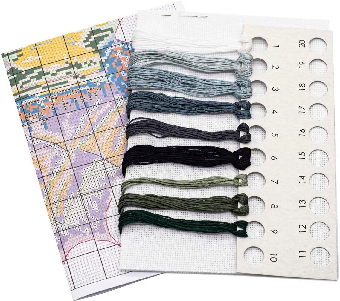 В наборе: канва Aida 16, мулине ПНК им. Кирова (9 цветов), цветная символьная схема, игла, инструкция.