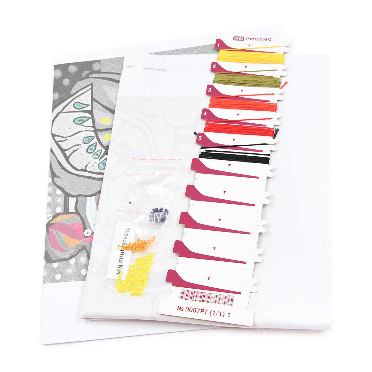 | В набор входит | ткань с нанесенным рисунком, хлопковое мулине (Anchor), бисер, 2 иглы, цветная символьная схема, инструкция |
