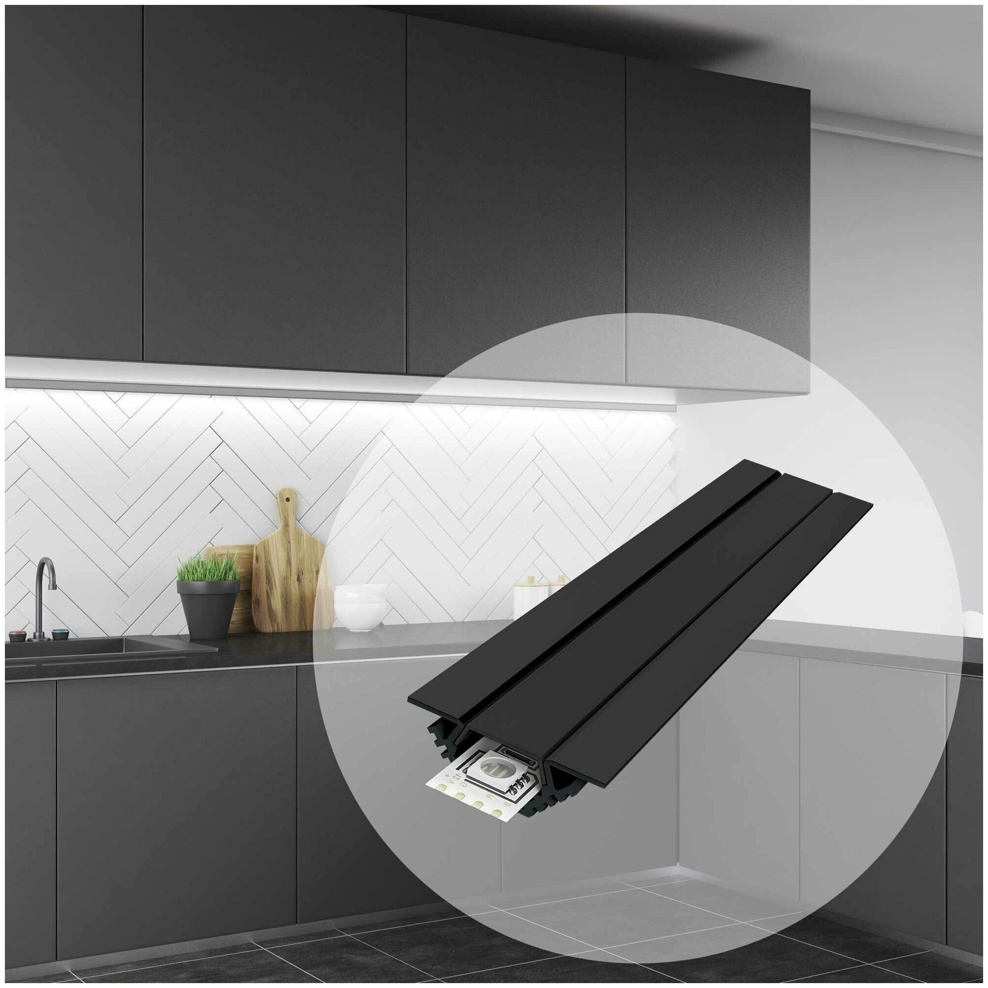 Алюминиевый профиль для светодиодной ленты по своей конструкции является накладным угловым, а это значит, что такой вариант профиля идеально подходит для монтажа накладным способом в угол между двумя плоскими поверхностями, а его свечение направлено под углом 90°. Данная модель алюминиевого профиля имеет размер 28,5х10,4х1000мм, и внутри него можно разместить светодиодную ленту шириной до 10мм. В алюминиевый профиль уже установлен рассеиватель черного цвета, изготовленный из светорассеивающего поликарбоната. Такой рассеиватель пропускает 23% светового потока и делает его более мягким и приятным для Ваших глаз, но в то же время не искажает передаваемые оттенки свечения и наиболее часто используется для организации декоративного освещения. Также в комплекте с профилем идут заглушки в количестве 2-х шт. Благодаря дробеструйной обработке профиль идеально гладкий, а нанесенная на поверхность профиля порошковая краска элегантного черного цвета защитит профиль от окисления и поможет подчеркнуть нетривиальный дизайн помещения.