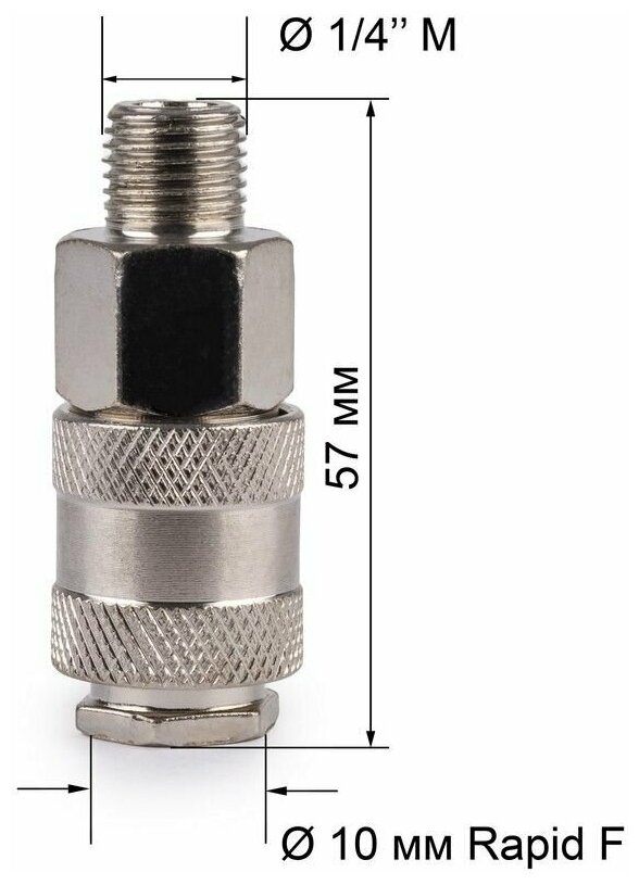 Соединитель рапид «мама» — наружная резьба 1/4 — сертифицированная продукция, геометрически точная, долговечная и отвечающая всем современным требованиям.