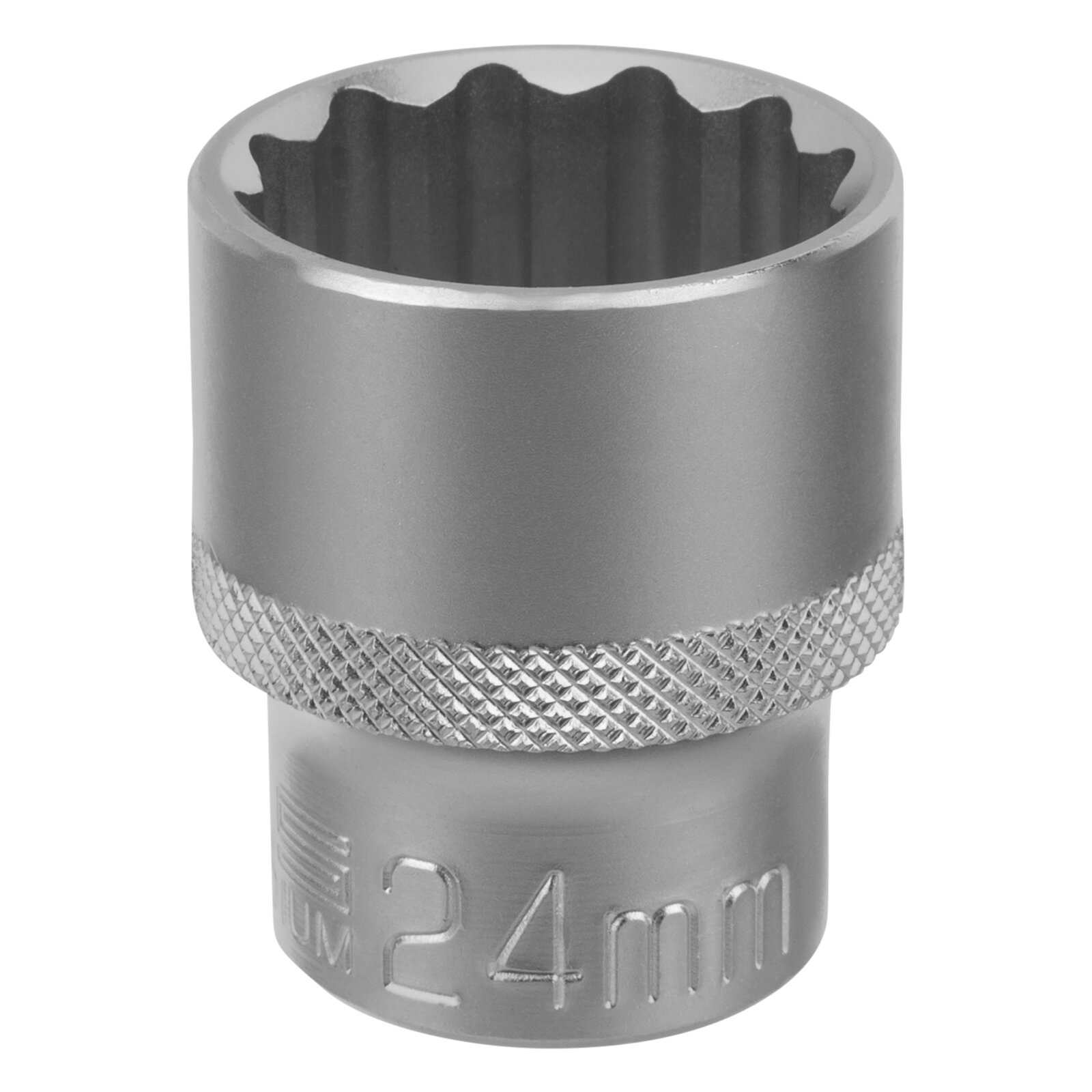 Головка торцевая, 24 мм, 12-гранная, CrV, под квадрат 1/2", хромированная// Stels