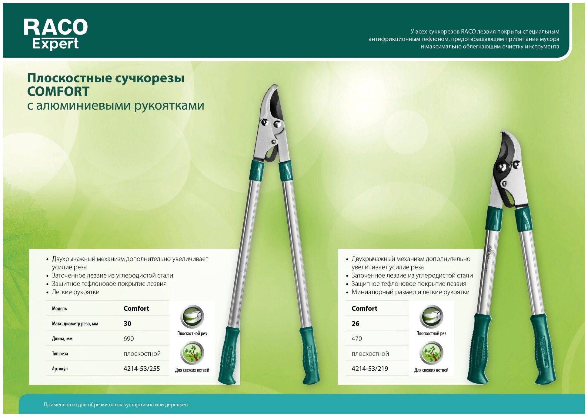 RACO Comfort, высокоуглеродистая сталь, закаленные лезвия, двурычажный, с алюминиевыми рукоятками, большой плоскостной сучкорез ()