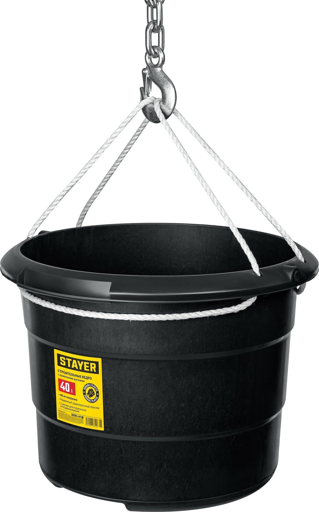 Строительное пластиковое ведро с канатными ручками Stayer 40л представляет собой удобную емкость для замешивания растворов и различных смесей. Канатные ручки упрощают транспортировку нагруженной емкости.