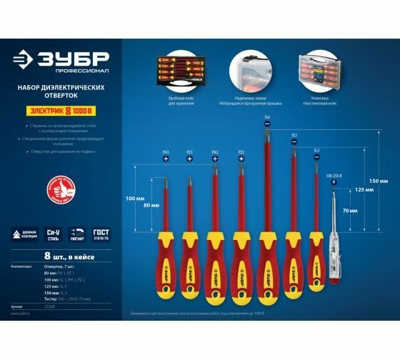 Набор диэлектрических отверток ЗУБР ПРОФЕССИОНАЛ 25268