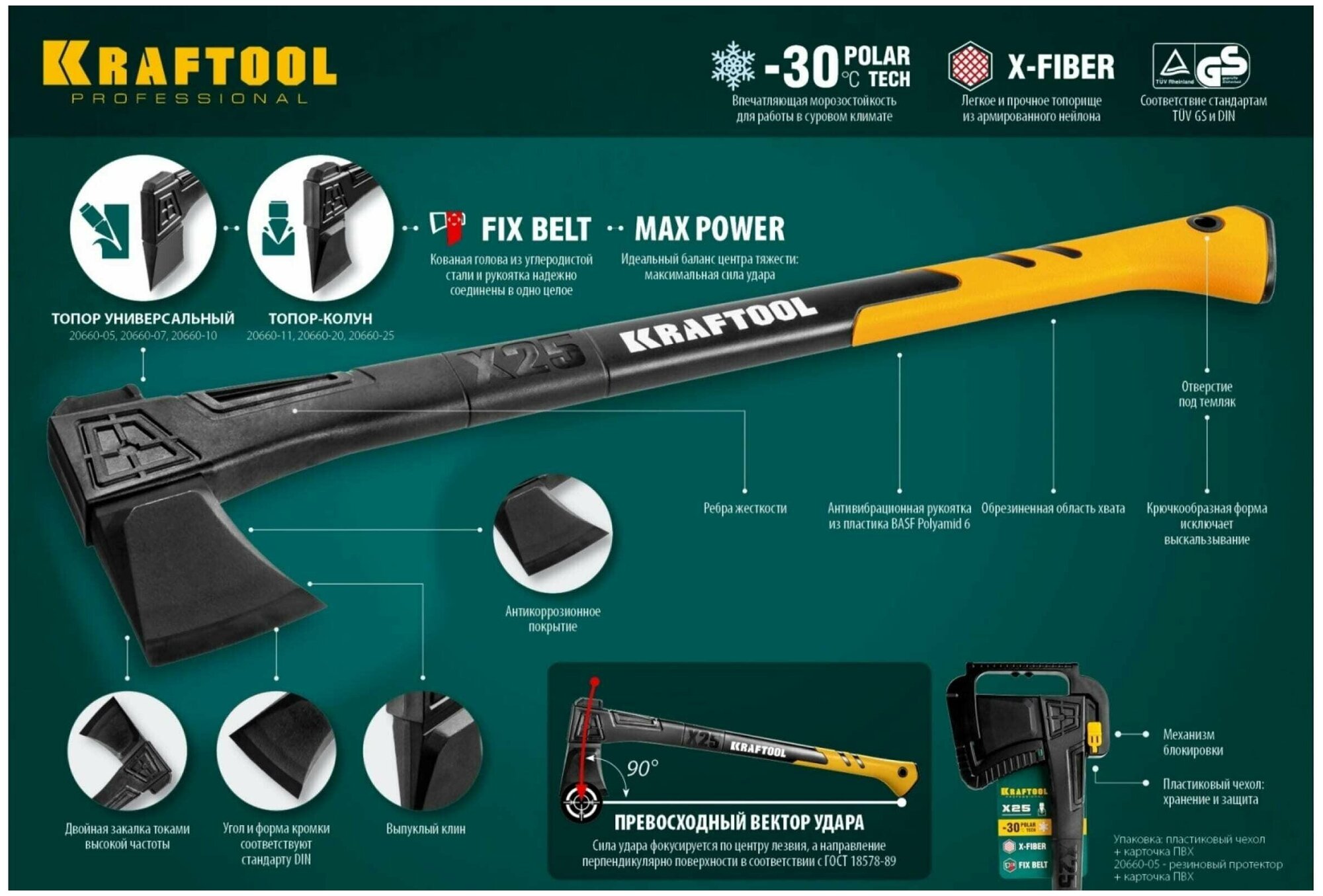 KRAFTOOL X11 1100/1400 г, в чехле, 450 мм, Топор-колун ()