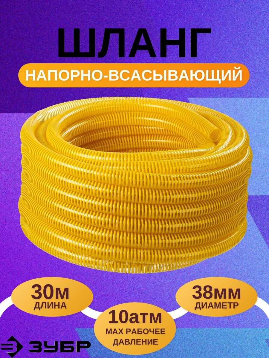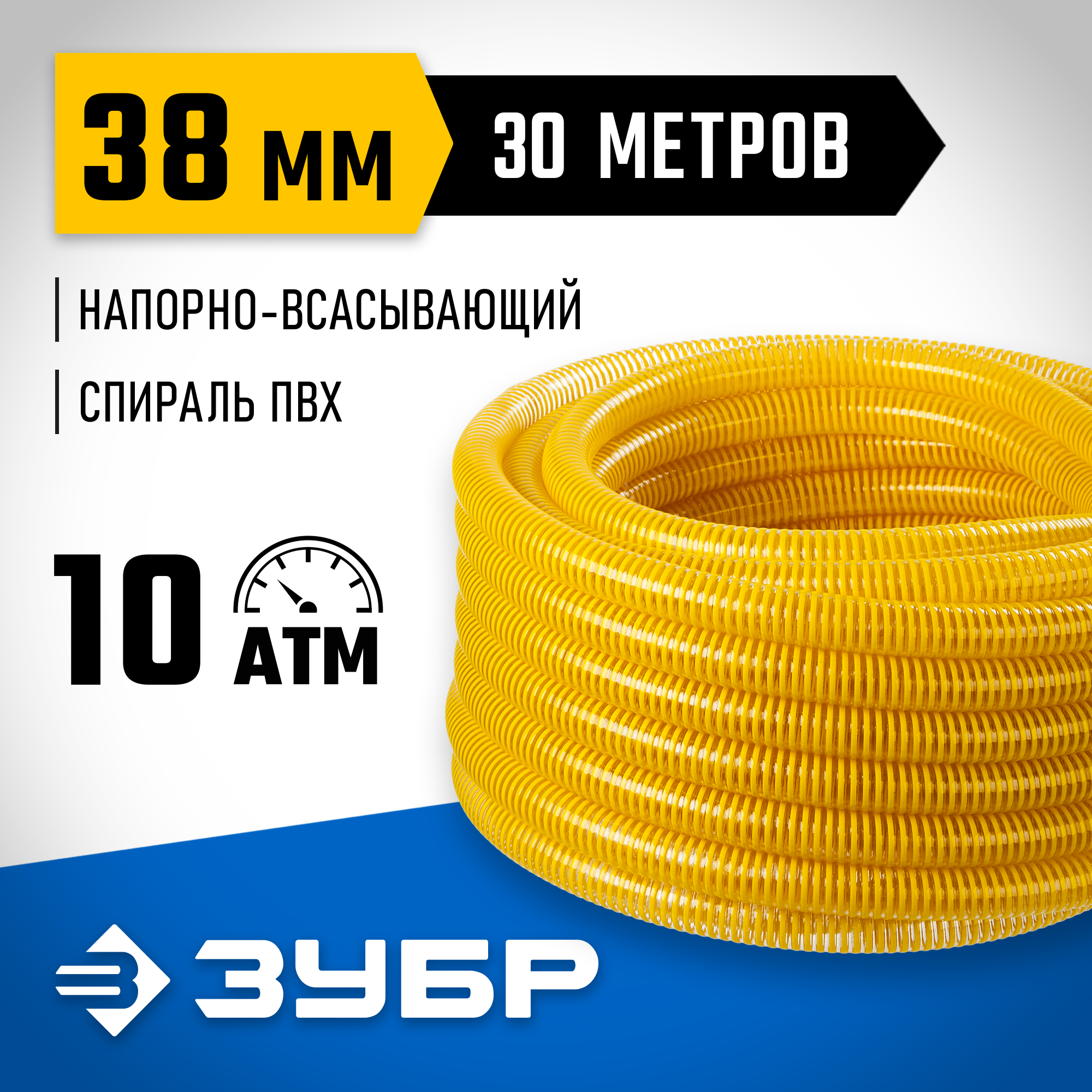 ЗУБР Шланг напорно-всасывающий со спиралью ПВХ, 10 атм, 38мм х 30м
