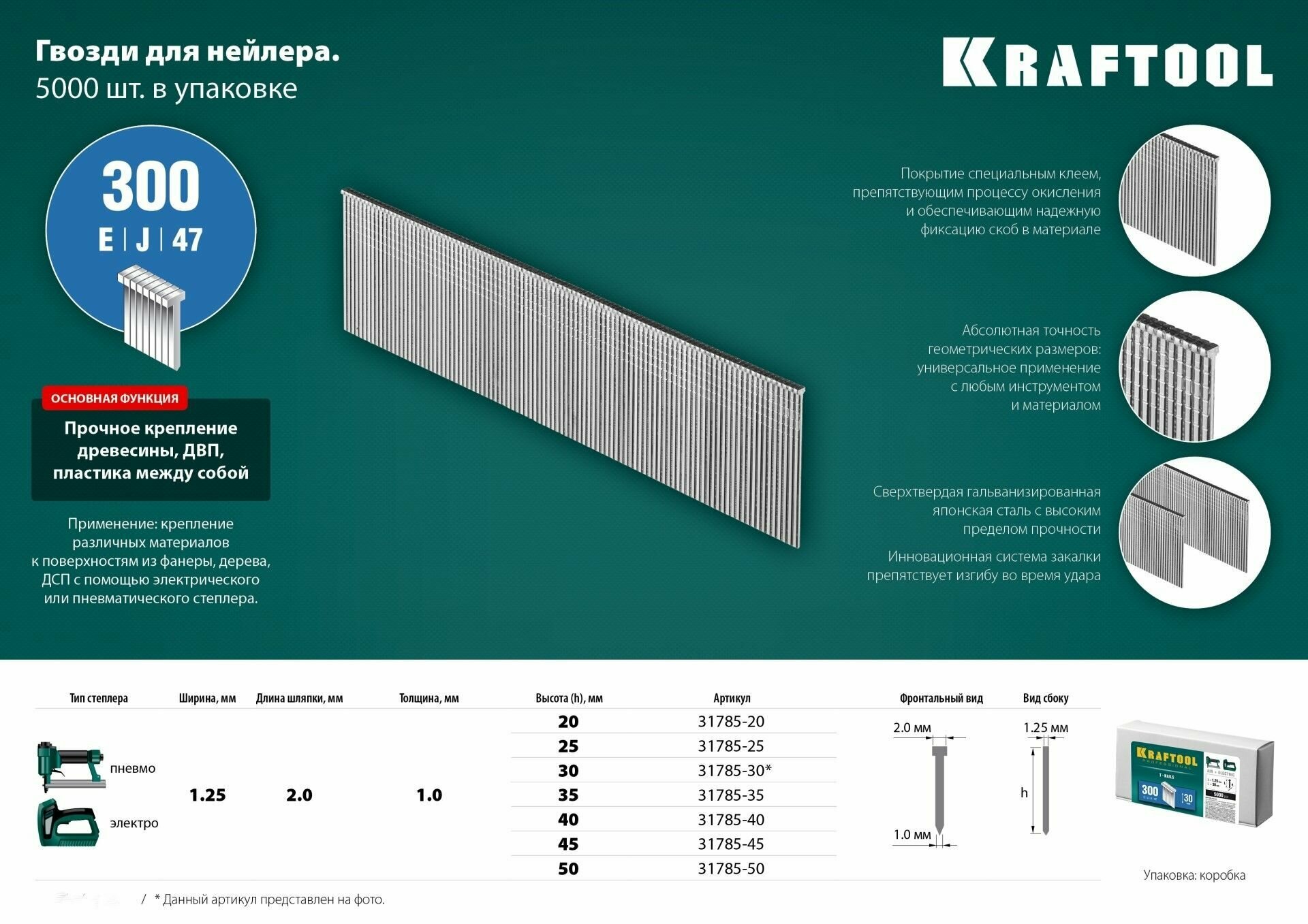 KRAFTOOL тип 18GA (47 / 300 / F) 50 мм, 5000 шт, гвозди для нейлера ()