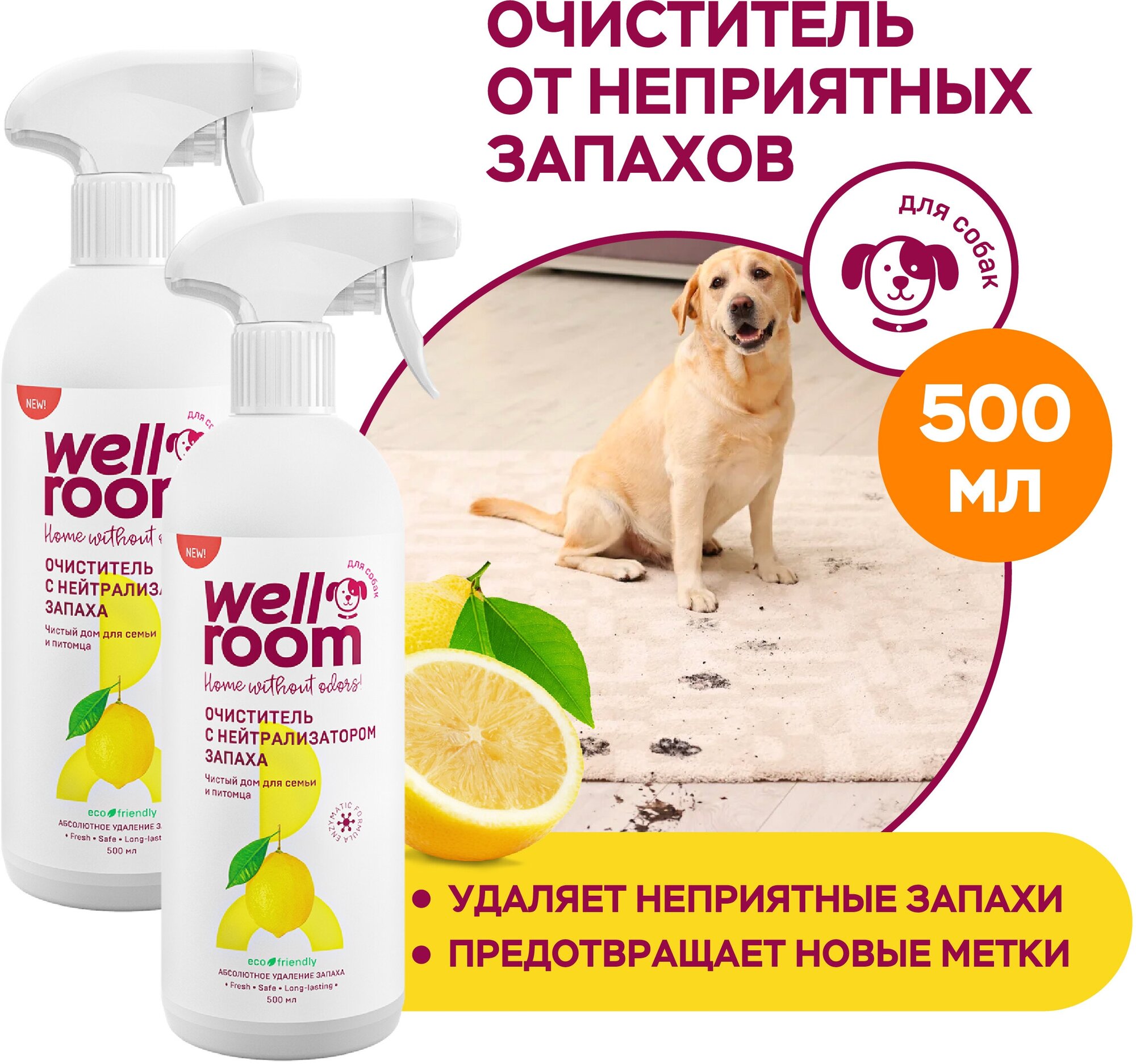 с нейтрализатором запаха против собачьих меток 500мл Wellroom