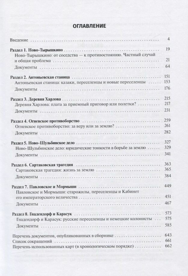 Жалобы старожилов на переселенцев, жалобы переселенцев на старожилов, ответы тем и другим из губернского управления, переписка между чиновниками разного уровня, сопутствующие документы — вот та база, которая позволяет в каждом случае выявить механизм возникновения и развития конфликта. Тексты документов сопровождаются археографическими легендами и дополняются обширной исследовательской частью, в которой показывается значение публикуемых документов для изучения сибирского переселения в контексте мировых миграционных процессов и истории русского крестьянства конца XIX — начала XX в.