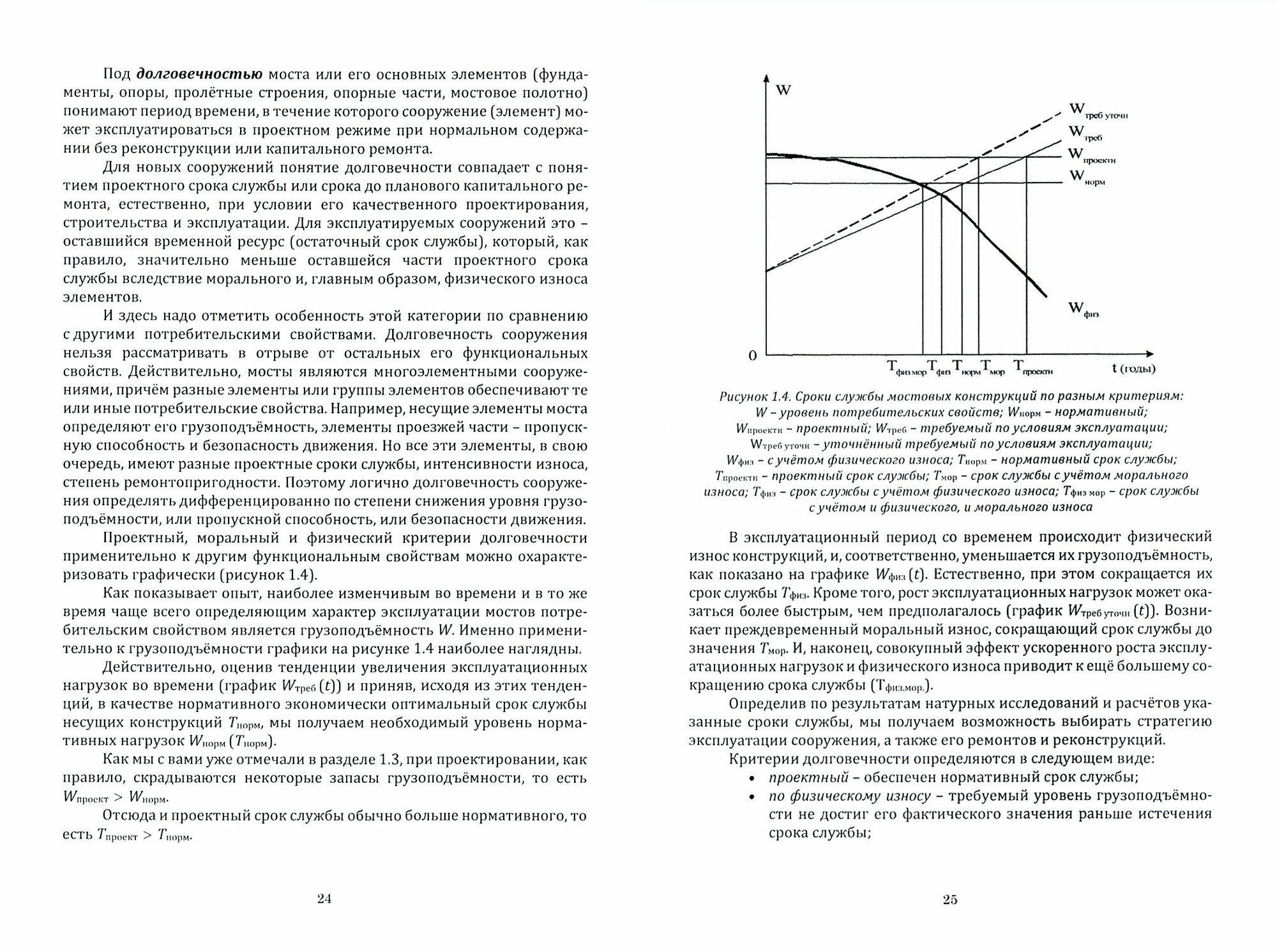 Представлена методология оценки грузоподъёмности и долговечности автодорожных и городских мостов на основе системного подхода и положений теории надёжности. Приводятся характеристики функциональных потребительских свойств мостовых сооружений. Подробно описаны методы оценки проектного и фактического значений грузоподъёмности. Изложен состав натурных исследований, дан анализ дефектов и повреждений, а также их влияния на грузоподъёмность и долговечность. Рассматриваются возможные стратегии эксплуатации и ремонта мостов с целью оптимизации их содержания в течение жизненного цикла.