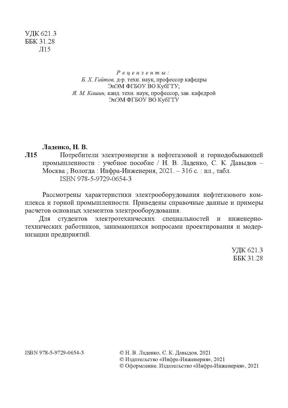 Потребители электроэнергии в нефтегазовой и горнодобывающей промышленности (Ладенко Николай Васильевич, Давыдов Сергей Кеоркович); Инфра-Инженерия, 2021