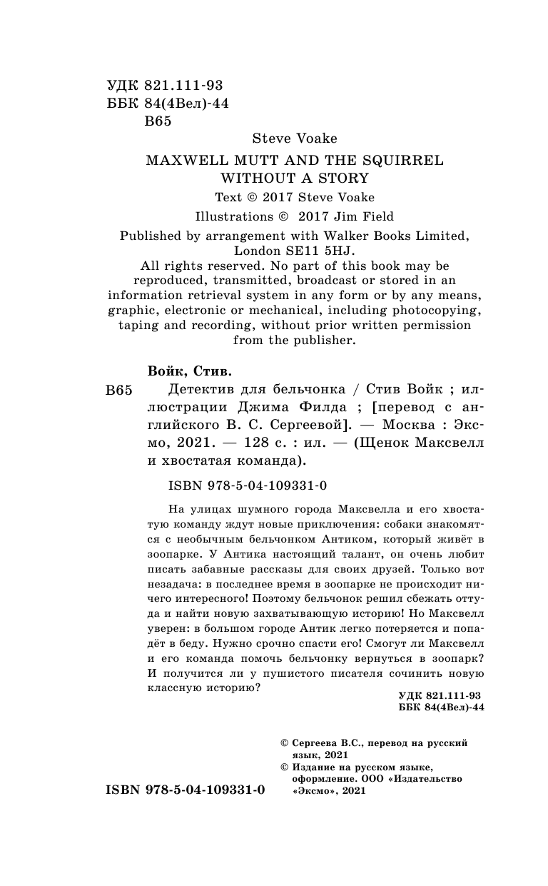 На сегодняшний день товар «Книга: Детектив для бельчонка (Щенок Максвелл и хвостатая команда); ООО "Издательство "Эксмо", 2021» можно купить с кешбеком в 3 магазинах: book24, Буквоед, Читай-город
