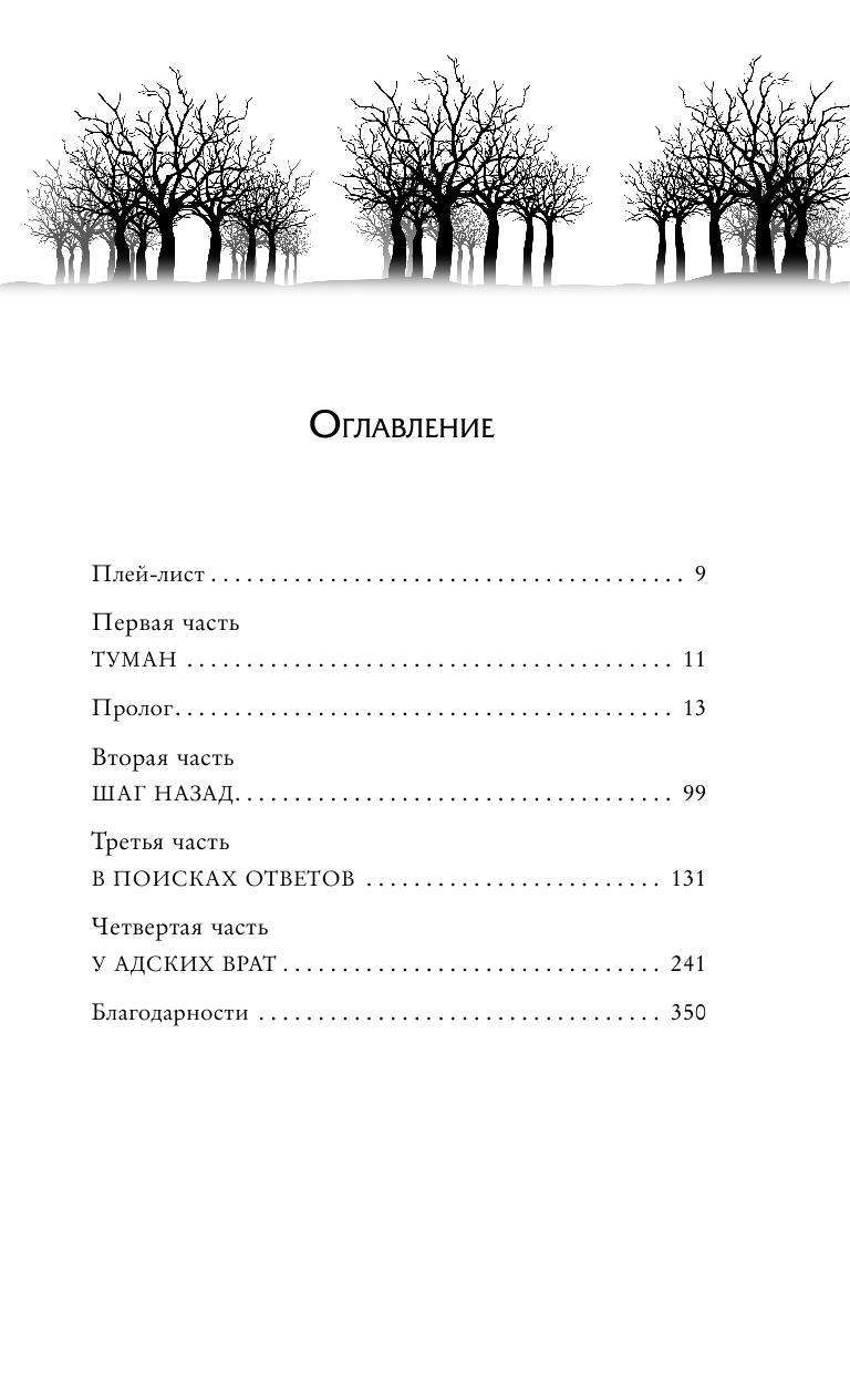 красивое оформление глав- на каждой главе черно-белый рисунок деревьев без листвы. Вначале книги автор порекомендовала свой плейлист.