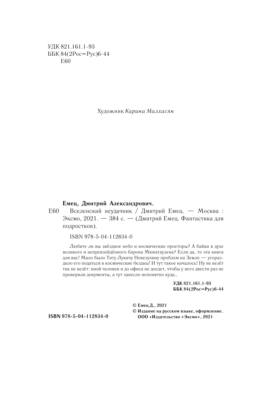 Книга: Вселенский неудачник (Емец Дмитрий Александрович); ООО "Издательство "Эксмо", 2021