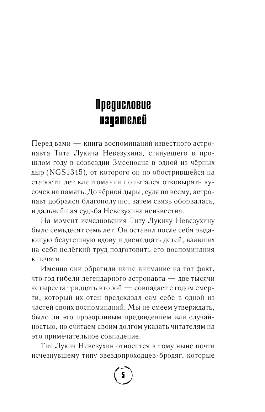 Любите ли вы звездное небо и космические просторы? А байки в духе великого и непревзойденного барона Мюнхгаузена? Если да, то эта книга для вас! Мало было Титу Лукичу Невезухину проблем на Земле - угораздило его податься в космические бездны! И тут такое началось! Ну не везет так не везет: иной человек и до офиса не доедет, чтобы у него двести раз не проверили документы, а тут занесло непонятно куда…