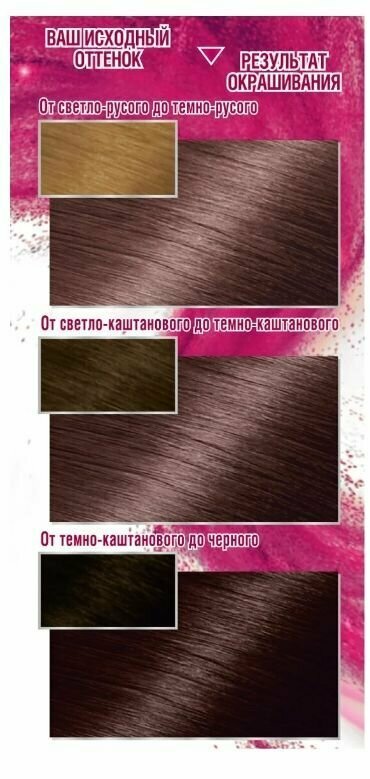 | Комплектация | флакон с молочком-проявителем (60 мл); тюбик с крем-краской (40 мл); крем-уход после окрашивания (10 мл); инструкция; пара перчаток |