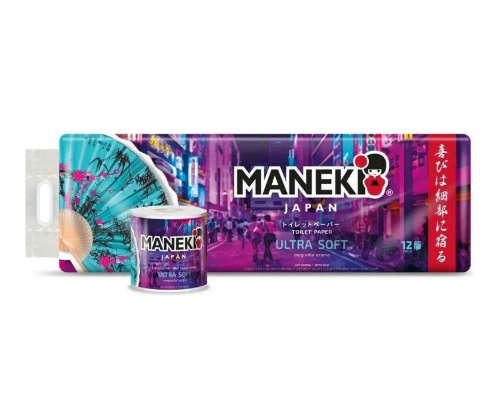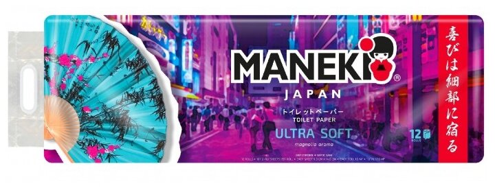 Туалетная бумага Maneki Dream с тиснением и ароматом магнолии 12 рулонов 2 слоя