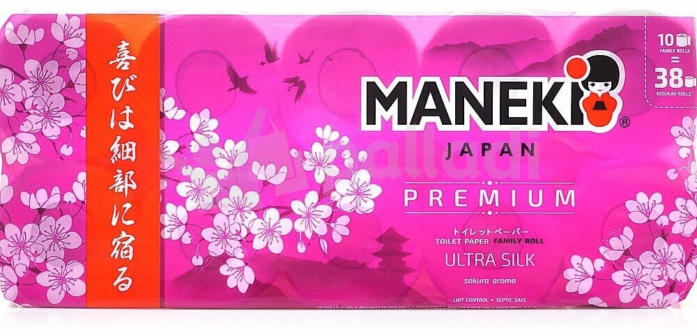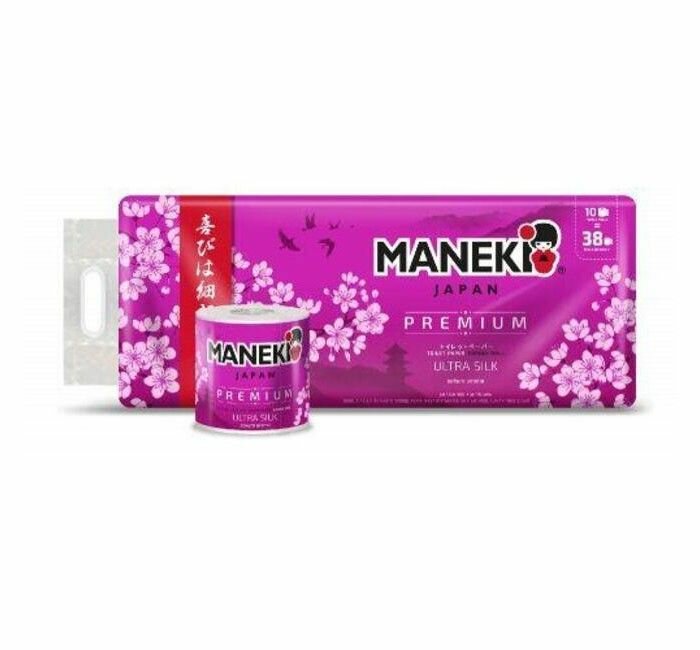 Туалетная бумага 3 слояvс ароматом Maneki. В производстве туалетной бумаги Maneki используется органическая целлюлоза высшего качества, без примесей и флуоресцентных красителей, что позволяет использовать ее даже для самой чувствительной и нежной кожи.Трехслойная структура позволяет бумаге отлично впитывать, обеспечивает экономичный расход при использовании. Пресс-линия сделана таким образом, что лист равномерно и с легкостью отрывается одним движением руки.Благодаря плотной намотке рулона, Вы получаете практически два рулона туалетной бумаги по цене одного! Хорошо растворяется в воде. Удобная упаковка с ручкой. Каждый рулон в индивидуальной упаковке.