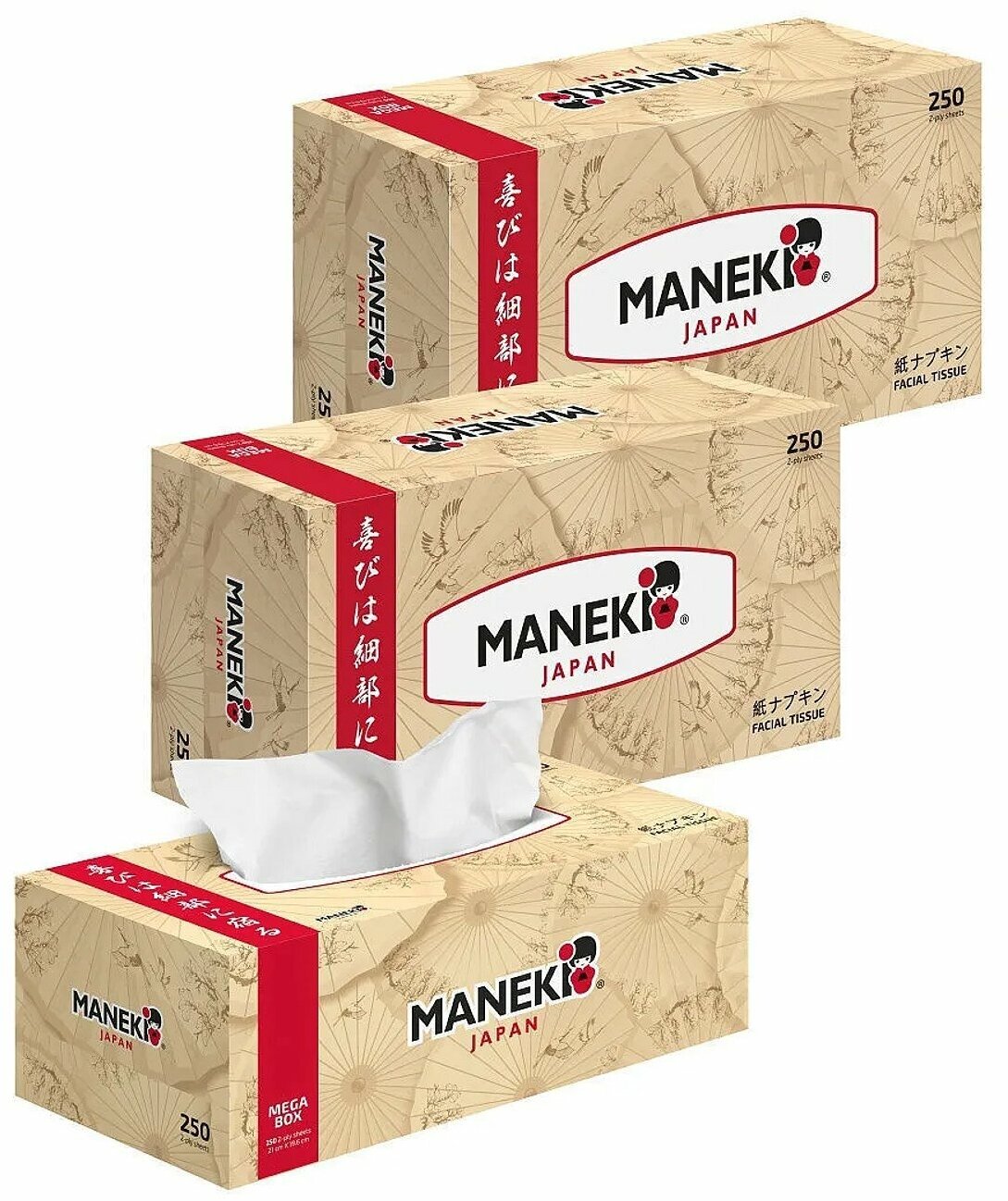 Салфетки бумажные Maneki Kabi 2 слоя 250шт