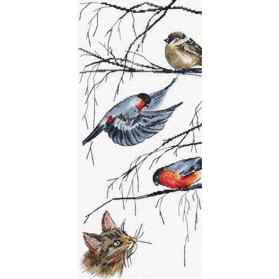 J-7129 "Любопытный кот и птички" PANNA (размер: 19,5х43 см)