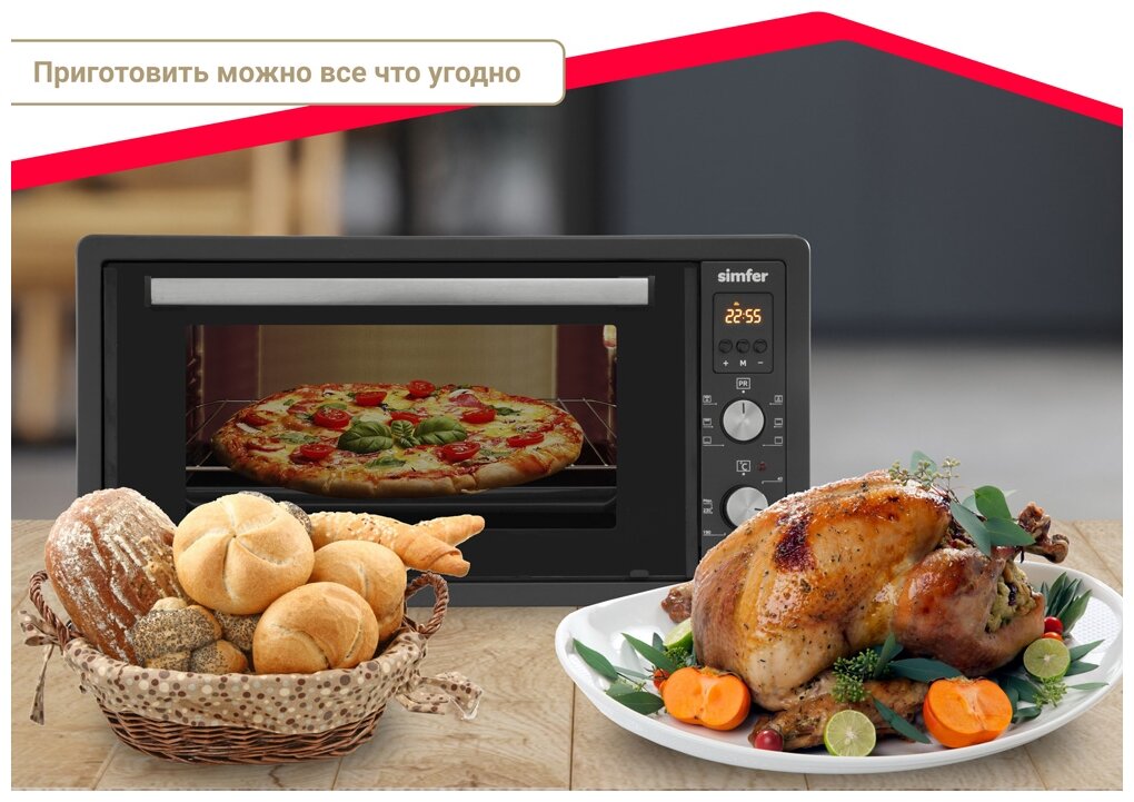 Характеристики электропечи Simfer позволяют считать ее реальной альтернативой стандартным вариантам приготовления пищи на электрической или газовой плите. Настольная духовка выпускается известной в России компанией из Турции, причем данная модель относится к флагманским из серии Albeni Plus Comfort. Причины – обширный набор возможностей для разогрева и готовки самых разных блюд и выпечки.
