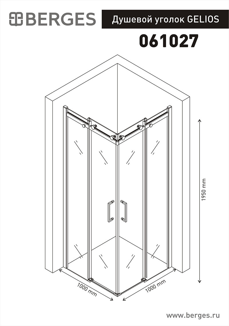 Душевой уголок Berges Wasserhaus Gelios 100х100 061027 профиль Хром стекло прозрачное