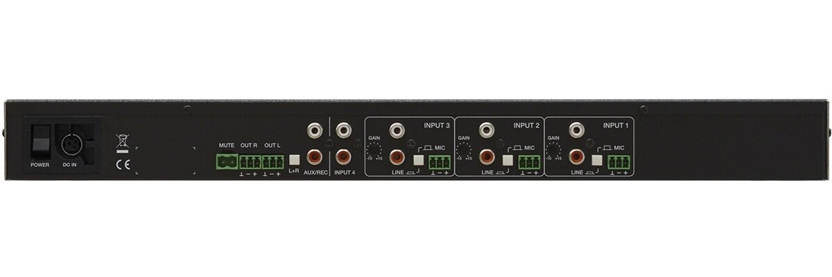 - Настройка чувствительности микрофона с задней панели микшера