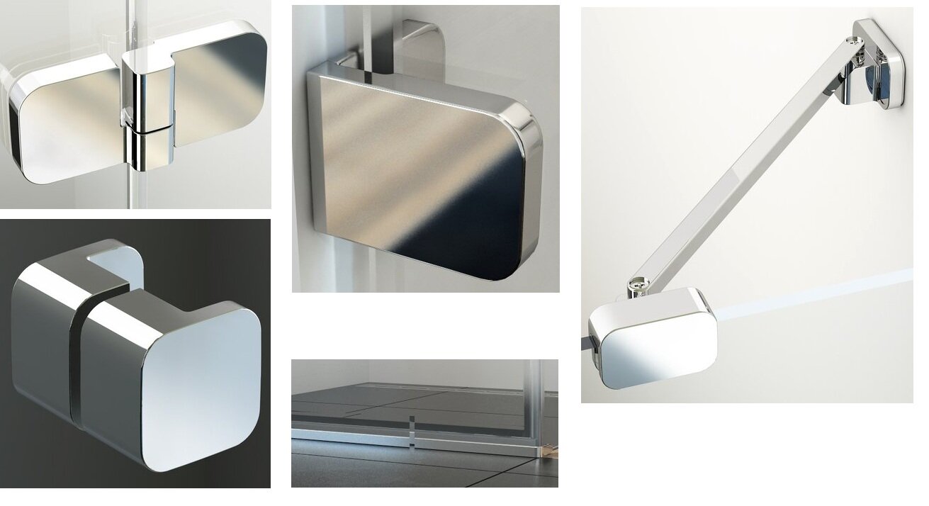 Набор дизайнерских изысканных петель, ручек, кронштейнов и держателя придаст минималистский вид душевым дверям Brilliant BSD2 100 левого или правого варианта. Квадратная плоская форма металлических элементов отличает угол Brilliant от всех остальных на рынке. Сочетание высококачественного металла и совершенного хромирования гарантирует максимально возможное качество всех металлических элементов. Благодаря этому мы можем гарантировать очень длительный срок службы всех этих элементов- более 30 лет.
