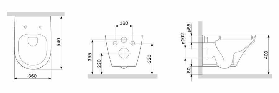 | Габариты унитаза без упаковки | 355х370х540 |
