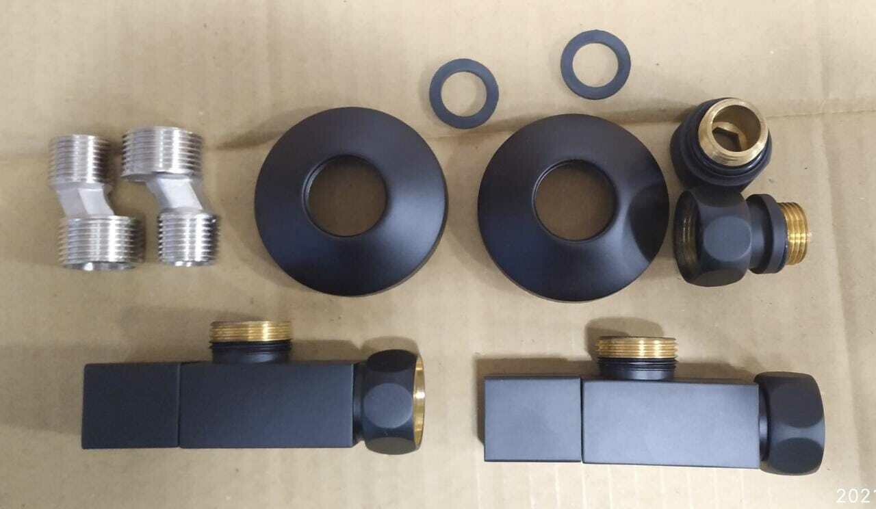 Квадратный комплект подключения 3/4 x 1/2 ГШ. В составе поставки: вентили квадратные – 2 шт., эксцентрики – 2 шт., отражатели – 2 шт.
