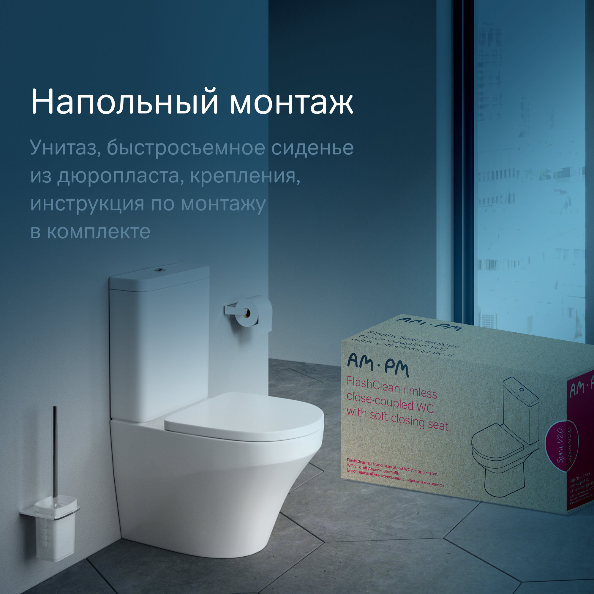 - Унитаз-компакт напольный с закрытым сиденьем AM.PM Spirit C708600SC экономный слив гарантия 25 лет